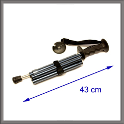 Kompakta vandringsstavar Gipron 315 Ferrata är ett par lättvikts ultrakompakta vandringsstavar, lätta att stoppa i ryggsäcken. Tvådelade med det smidiga patenterade flicklocklåset. Mäter endast 42 cm i hopfällt läge. Fler kompakta vandringsstavar är 5-delade Classic Canes som fäller ut sig automatiskt samt Gipron Smartpole för trailrunning. Bland våra specialstavar finns nu tvådelade inlinesstavarna Quattro från ACC med inbyggd stötupptagande fjäder i handtagen och med handskrem. Justerbar från 110 cm till 170 cm. Levereras med en rund gummifot som även finns som tillbehör. Stavspetsen är av hårdmetall. Oval Lighter från True Utility är en avskalad och ergonomisk stormtändare som kan tändas upp och ner. Ett stort utbud av olika sorters gummitassar, handskremmar, stavspetsar, trugor mm till vandrings- och gåstavar hittar du under Tillbehör. Som vanligt skickar vi samtliga varor fraktfritt inom Sverige. |